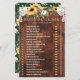 Un design élégant et chic de jeu de douche de nuptiale parfait pour les futurs mariés à la campagne. Notre design comprend nos tournesols jaunes dorés peints à la main, des fleurs crème blanches et des espaces verts naturels aménagés pour créer cet élégant aménagement de style champêtre. "Devinez de mariée ou de chambre qui l'a dit" est affiché en haut avec. Jaunes dorés, crèmes et couleurs vert forêt créent un élégant style rustique de style champêtre. jaune Aquarelle florale tournesol et verdure encadrent le dessus. L'envers comprend notre motif de tournesol jaune aquarelle complémentaire. Toutes les fleurs sont dessinées à la main par Moodthology.