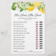 Faites de votre douche nuptiale inspirée par les agrumes un souvenir avec ce jeu de fête nuptiale "il a dit, elle a dit" élégant et drôle! Doté de citrons d'été d'aquarelle luxuriante, de citrons et de feuillage vert, et de modèle texte qui peut être facilement personnalisé.