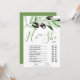 Ajoutez une touche d'amusement et d'élégance à votre douche nuptiale avec notre carte He Said She Said Olive Branches, conçue pour éveiller le rire et la connexion entre vos invités. Les accents doux à la branche d'olivier créent un look naturel et sophistiqué, parfaitement adapté aux thèmes rustiques, boho ou modernes. Avec ses invites ludiques, cette carte de jeu encourage les moments légers comme des amis et la famille deviner les réponses du marié ou de la mariée. Le design verdoyant intemporel ajoute une ambiance fraîche et apaisante, ce qui en fait un ajout charmant à votre décor d'évènement. Conçu sur des cartons de qualité, il offre une surface d'écriture lisse et une longévité pour les porteurs. La disposition élégante assure une lisibilité facile tout en gardant l'accent sur le plaisir. Les invités aimeront participer à cette activité interactive, en créant des souvenirs que la mariée chérira. Cette carte allie charme, divertissement et élégance.