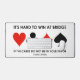 Si vous jouez au jeu du pont ou du pont dupliqué, alors vous connaissez le vérisme de pont suivant : "Il est difficile de gagner au pont si les cartes ne mentent pas en votre faveur". Faites une double prise à la table du pont avec ce tapis de bureau avec ce pont commun disant à la table du pont! Le design comprend les quatre costumes de cartes.