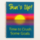 Gardez le suivi de vos progrès avec ce mignon planificateur. Il présente des oeuvres d'art du lever du soleil avec l'expression "Sun's Up! Il est temps d'écraser certains objectifs" en jaune vif. Un message positif pour vous encourager.