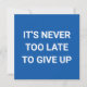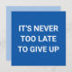 "Il n'est jamais trop tard pour abandonner" est une citation démotivationnelle amusante et satirique ici sur une base bleue.
