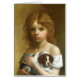Une petite fille se verse et tient son chien dans ses bras. Elle dit qu'il n'est pas à vendre et semble prêt à se battre pour garder son chiot.