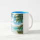 " Île d'éon : Rivage de matin de" tasse 2 tons 11 onces. Image de CD Geotic avec le même nom de l'aquarelle originale par Judas Wiesenfeld (copyright). L'intérieur de la tasse est cerulean en couleurs !