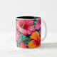 Les fleurs tropicales d'hibiscus rose et orange ajoutent une touche de vacances estivale à votre prochain coupa ! La tasse à café de l'île Hibiscus est assortie à l'oreiller lancé par l'île Hibiscus. Ils font de grands cadeaux séparément ou ensemble !