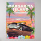 Venezuela, Margarita Island affiche de voyage de style vintage de belle vieille voiture classique sur la plage.