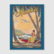 Publicité de voyage hawaïenne vintage - Danseuse Hula Girl - Avion et plage