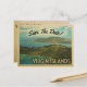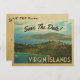 Une carte postale unique néo-vintage Virgin Islands Save The Date avec des tonnes de style rétro du milieu du siècle avec vue sur St Thomas. Vos invités mariages aimeront cette Iles Vierges Save The Date, parfait pour un mariage de destination.