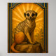 Célébrez la majesté tranquille de la nature avec cette empreinte stylisée d'art de la faune avec un meerkat assis fièrement au centre d'un soleil éclatant. Rendu dans des lignes audacieuses et des formes géométriques, l'illustration est inspirée de l'esthétique Art Déco et du vitrail, alliant charme naturel et élégance architecturale. La posture composée et le regard avant du meerkat évoquent des thèmes de vigilance et de force tranquille, tandis que des motifs plantes tourbillonnants et une riche palette d’or, de vert et de bleu ajoutent profondeur et goût décoratif. Décorée d'une bordure symétrique, cette pièce est parfaite pour des intérieurs éclectiques, des décors d'inspiration nature ou comme cadeau unique pour les amoureux des animaux et les amateurs de design.