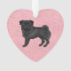 L'illustration originale de Destei d'un adorable chien de race Carlin couleur manteau noir. Le chien est debout et regarde vers le spectateur. La queue est courbée sur le haut du dos du chien. La bouche du chien est fermée et la couleur de l'oeil est marron. La couleur arrière - plan est rose avec une texture décorative légère qui peut être enlevée, si vous le souhaitez.