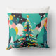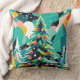 Ceci est un oreiller de Noël Habatour Creations, rempli d'un arbre moderne coloré de Noël illustration design copyright de @Habatour Créations Copier ou utiliser sans autorisation est illégal
