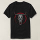Un design de T-shirt noir et blanc saisissant représentant un crâne de taureau avec des cornes pointues et proéminentes. Le crâne est positionné au centre et entouré d'un contour rouge gras, ajoutant un contraste dynamique. Le travail de ligne détaillé capture la structure complexe du crâne et des cornes. Le fond transparent permet une utilisation polyvalente, ce qui rend ce design parfait pour l'image de marque, les logos, les vêtements thématiques et la mode graphique audacieuse.