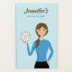 Illustration de Destei d'une mignonne fille tenant une balle de volley dans la main. La fille a de longs cheveux bruns et elle porte une chemise bleue. La couleur arrière - plan est bleu clair. En haut, il y a des zones de texte personnalisables pour le titre du planificateur.