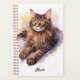 Dessin de style aquarelle adorable illustrant Marble, un chat blanc et tabby.