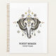 Illustration de tête d'éléphant tribal cool en gris et or sur arrière - plan blanc.