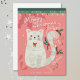 Jolie carte de Noël avec une ambiance rétro représentant une illustration d'un chat blanc et un texte "Meowy Noël". Parfaite pour les amoureux des chats. Personnalisez cette carte avec votre nom. Œuvre originale de Marketa Stengl.