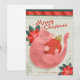 Carte de Noël mignonne avec une vibe rétro illustrant un chat rose jouant avec une baule et un texte "Meowy Christmas". Parfait pour les amoureux de les chats. Customisez cette carte avec votre nom. Oeuvre originale de Marketa Stengl.