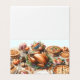 Illustration à l'aquarelle d'un magnifique repas de Thanksgiving sur une table à manger en bois. La pièce maîtresse est une dinde rôtie entourée d'un ensemble de plats colorés. De petites citrouilles décoratives ornent la table, et il y a des bougies qui procurent une lueur chaude. La mise en place comprend des assiettes, des couverts et des verres, créant une atmosphère chaleureuse et festive. Conçu par l'artiste Danguole Serstinskaja