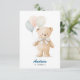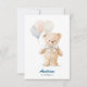 Invitation de charme ou décoration conçue pour un anniversaire. Il présente l'illustration centrale d'un ours en peluche beige moelleux tenant trois ballons de couleur pastel. L'ours a une expression douce et souriante avec des joues roses, des yeux noirs brillants et un nez rond. Il se tient debout et semble tenir doucement les cordes de ballon dans les deux mains. Les ballons sont dans des teintes douces de rose, vert menthe et pêche, ajoutant une touche de fantaisie et de rêve. Le style général est délicat et peint à la main, évoquant un sentiment de chaleur, d'innocence et de joie de l'enfance. CADE Design © Vous pouvez personnaliser avec votre nom et votre texte. Vous pouvez modifier la couleur du texte et le style de police à l'aide de l'option customiser. VEUILLEZ NOTER : Les couleurs affichées en ligne peuvent varier légèrement du produit réel.