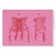 Une vieille illustration d'un corset de couleur rose orne ces t-shirts et autres objets.