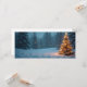 Illustration d'un sapin décoré avec une étoile et des guirlandes dans un paysage d'hiver. Un classique, dans un style peint