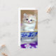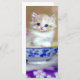 Carte avec un chaton blanc moelleux ! Le chaton aux yeux bleus est assis dans un bol bleu avec des fleurs roses. Une couverture à fleurs violettes est drapée devant. Un cadeau merveilleux pour les amoureux de les chats et les amateurs d'art victorien !