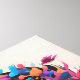 Cette image stylisée et vibrante est une illustration circulaire dressée contre un simple arrière - plan beige. Au sein du cercle, une demi-lune brille de riches nuances de jaune et d'orange. La lune est entourée d'une explosion dynamique de formes abstraites et tourbillonnantes qui représentent les nuages et l'énergie céleste. Ces formes sont rendues dans une palette électrique de roses chauds, d'oranges ardentes et de bleus vifs, créant un puissant sens du mouvement et de l'émerveillement. Le côté gauche du cercle révèle un ciel nocturne bleu foncé rempli d'étoiles brillantes, offrant un contraste saisissant avec l'énergie chaotique et vive des nuages colorés. L'ensemble ressemble à une prise moderne et artistique sur un événement céleste, combinant un élément réaliste (la lune) avec un arrière - plan fantastique et très stylisé.