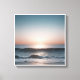Cette image capture une scène côtière sereine au coucher du soleil. Le ciel est peint avec des teintes douces de rose et de bleu, créant un décor apaisant. Le soleil, bas à l'horizon, projette une lumière chaude sur les vagues douces qui roulent vers le rivage. L'eau éclaire d'un subtil étincelle, reflétant la lumière du dessus. La plage de sable s'étend au loin, offrant un sentiment de tranquillité et de tranquillité.