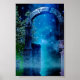 Une belle lumière brille sur une arche en pierre d'imaginaire, autour des buissons, de hauts stands et une urne tandis que tourbillonne le brouillard bleu étincelant. Cette photo est disponible en un nombre incroyable de tailles et de formes.