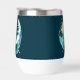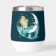 Une sirène blonde cheveux sur une lune croissant avec une queue de couleur turquoise avec de l'eau, des bulles d'eau et des étoiles tout autour. Le tout dans un style art déco4.
