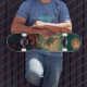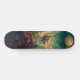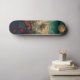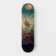 skateboard d'art cosmique Imaginaire. Illustration d'Une machine à vapeur fantaisiste aux yeux flottants et tentacules, portant une pièce surdimensionnée sur le dos au milieu de fleurs surréalistes dans le style de design de caractère détaillé, réalisme d'imaginaire coloré, illustrations oniriques, surréaliste, fantaisie. L'arrière - plan est un paysage autrement mondain avec des îles flottantes et des créatures éthérées