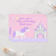 ~Cette conception d'invitations d'anniversaire comporte une Unicorne mauve et blanche magique. Il y a un imaginaire rose et violet arrière - plan et château. Personnalisez avec le nom de votre fille d'anniversaire et les détails de la fête.