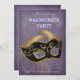 une invitation à la mascarade violette tendance, facilement personnalisable, cliquez sur "customiser" pour d'autres options : ajout, modification, suppression, redimensionnement, recoloration, restylage, texte et images