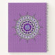 Ce mandala d'argent et de violet, inspiré des médailles indiennes et des costumes d'anime japonais, comporte des couches de pétales de lotus, de feuilles, de paisley et une roue ornementale autour de lui.