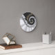 Imaginaire Piano Musique Amateurs Mur Horloge Un tourbillon de touches noir et perle blanc pour un clavier spiral avec une spirale de notes de musique dorée, le tout avec un arrière - plan soyeux