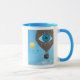 Pretty painting of hot air balloons, with the largest hot air balloon, having Imagine Love, is printed on both sides of coffee mugs. The large balloon also includes a painting of a third eye, with pink hearts that form a border around the word, Love. There are matching items in this store. Thank you for shopping at CherylsArt on Zazzle.