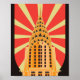 Ce design à thème art déco est composé d'un grand bâtiment rétro avec un arrière - plan éclatant de rayons rouges et blancs derrière le bâtiment. #building #tower #retro #artdeco #american #iconic #structure #tendance #cool