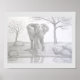 11"x14" Impression d'un éléphant africain né sans défenses. Il est sur papier lourd d'archives avec une bordure pour cadrage.