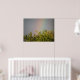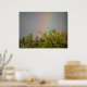 Cette impression présente une belle photo paysagère d'un arc-en-ciel au-dessus de quelques arbres. La photo a été prise immédiatement après une tempête de pluie pour capturer les couleurs vives de l'arc-en-ciel. Le ciel environnant est gris et couvert de nuages.