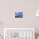 Tableau graphique d'un coucher de soleil rose sur l'eau bleu cristal. Ressentez les vagues de l'océan qui viennent sur le rivage avec cette oeuvre originale de Magins Creations.