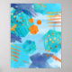 L'imprimé Abstrait d'aquarelle bleu et orange est lumineux et amusant, il regarde dans un salon ou un salon pour enfants.