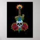 Dagger à travers un crâne avec des roses et des toiles d'araignée.