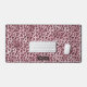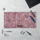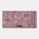 L'impression originale d'animal léopard rose de Destei, inspirée des motifs de fourrure de chat sauvage et des textures naturelles d'animaux, avec une bannière en texture de feuille d'aluminium rouge foncé fausse où vous pouvez personnaliser avec un nom ou autre texte.