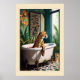 Impression d'art aquarelle Léopard fantaisiste dans la baignoire, Décoration de salle de bain Jungle