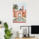 Impression d'art de cour marocaine Piscine rose et palmiers Aquarelle