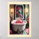 Impression d'art de flamant rose fantaisiste dans la baignoire ludique Aquarelle, Décoration de salle de bain botanique 10