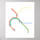 Décorez votre maison avec cette impression de peinture aquarelle aux couleurs vives de la carte du réseau de transports en commun rapide de la région de la baie de San Francisco !