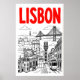 Impression d'art de la ville de Lisbonne - Affiche de voyage minimaliste noir et blanc