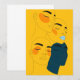 Visages abstraits en orange et bleu, quatre visages stylisés se chevauchent sur un fond orange avec des contours audacieux. La palette comprend des tons contrastés de bleu et d'orange.