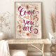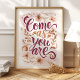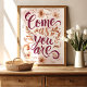 Adoptez l'acceptation de soi et rayonnez d'authenticité avec cette chaleureuse impression d'art « Venez comme vous êtes ». Avec des accents floraux délicats dans des tons chauds et terreux et une citation écrite à la main dans un script gracieux, cette pièce est un rappel doux pour embrasser votre vrai soi. Parfait pour ajouter une touche d'amour et de compassion à votre décoration de maison ou de bureau.